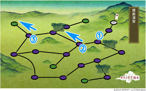 打刀以下で適当に編成して行くと、①のマスから竹藪にばっかり突っ込んで行く(笑)