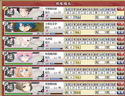 敵のレベルも低いです。今の所刀装なしなので遠戦もなし。