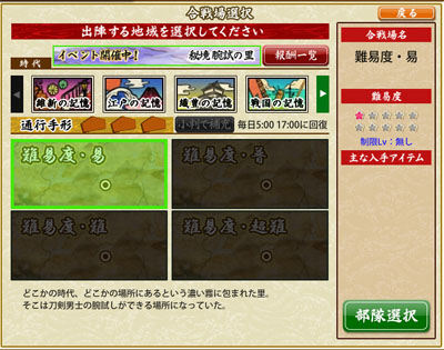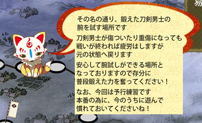 こんのすけさん話長い。てか、腕試しなのに出る札がランダムって。