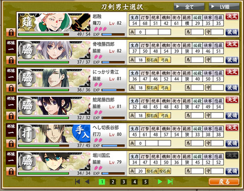 レベリングしやすいから厚樫山にはKBCマーク付けたくないんで、おじいちゃんは鍛刀か京都市中になるわけですが。