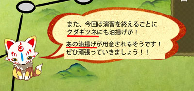油揚げに夢中のこんのすけ氏からのお言葉。