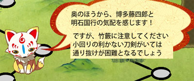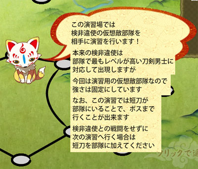 こんのすけ「この演習場には、弱めの相手が設定されており、経験の浅い刀剣を育てるのにもってこいです!」