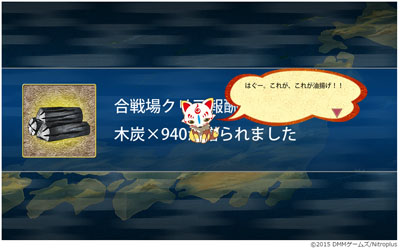 ドロップは愛染くん、報酬は冷却材950でした。・・・あっ、またこんのすけさんが。