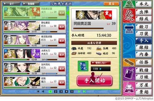 君の手入れ時間と資材数、大太刀とか槍並じゃないかい?
