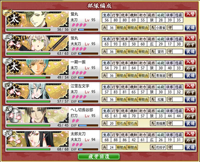 罠ですっ飛ばされる事を考えて大太刀2にしてみました。岩融さんもいるかなぁ。