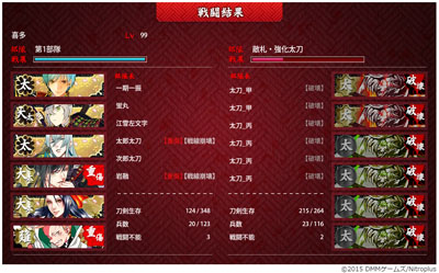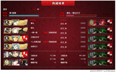 罠で刀装吹っ飛ばされた長谷部といち兄がやられちゃったけどC勝利。