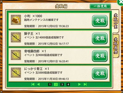 レベリングはサボってたけど、遠征と任務で小判と手伝い札はコツコツ溜めてるので、